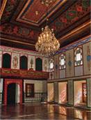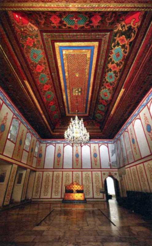 Зал совета и суда (диван). Вход оформлен каменной аркой. Зал был официальным местом, где обсуждались и решались государственные дела («диван» в переводе означает «совет старейшин»). Стены зала покрашены под серый гранит. Потолок деревянный резной с падугами, расписанными орнаментом русскими мастерами при ремонте 1784-1787 гг. В верхнем ряду окон установлены витражи. Над входом устроена забранная деревянной решеткой узкая галерея – «ханский тайник», откуда хан мог незаметно наблюдать за работой дивана. [Памятники градостроительства и архитектуры УССР. – К.: Будівельник, 1985 г., т. 2, с. 314 – 315).
