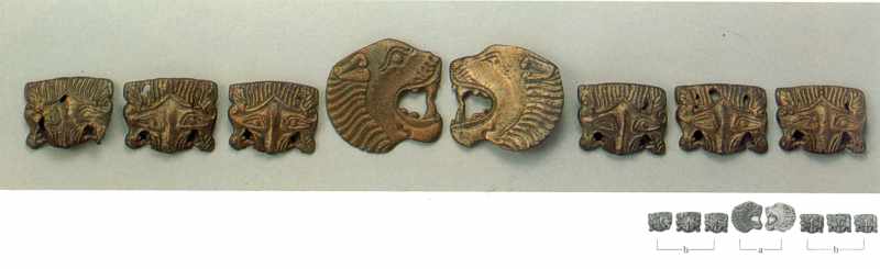 Бронза. Розміри голів левів 7.5: 7.2 см, малих пластин – 6: 5 см.