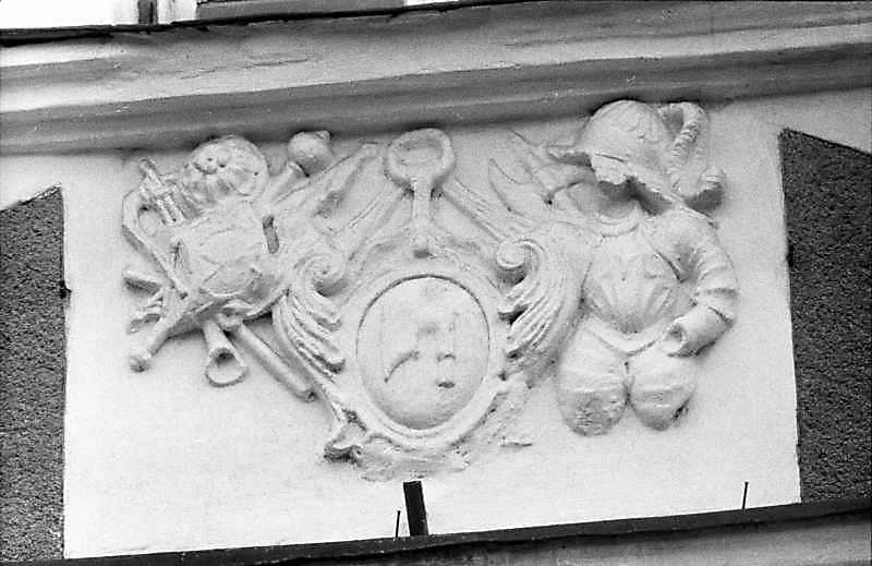 Гербова плита над західний порталомРозмір зображення: 800:519 піксел 1988 р. 16 червня. Фото М.І.Жарких. Негатека, № 400-28. |