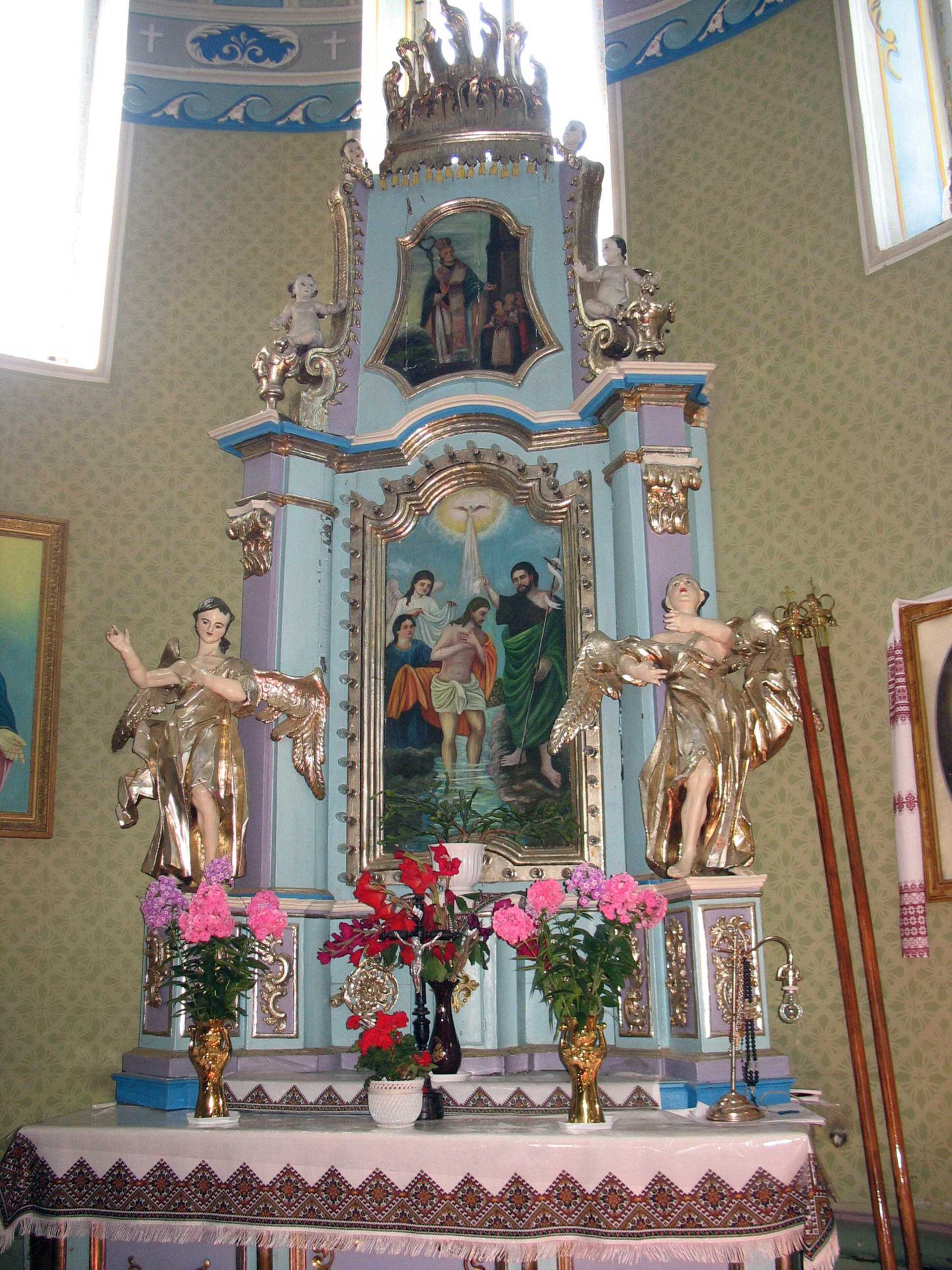 Кіот з іконою «Хрещення»Розмір зображення: 1944:2592 піксел Фото Зенона Боровця і Богдана Тхора, 10 серпня 2006 р. Вгорі – ікона «Введення Марії до храму». |