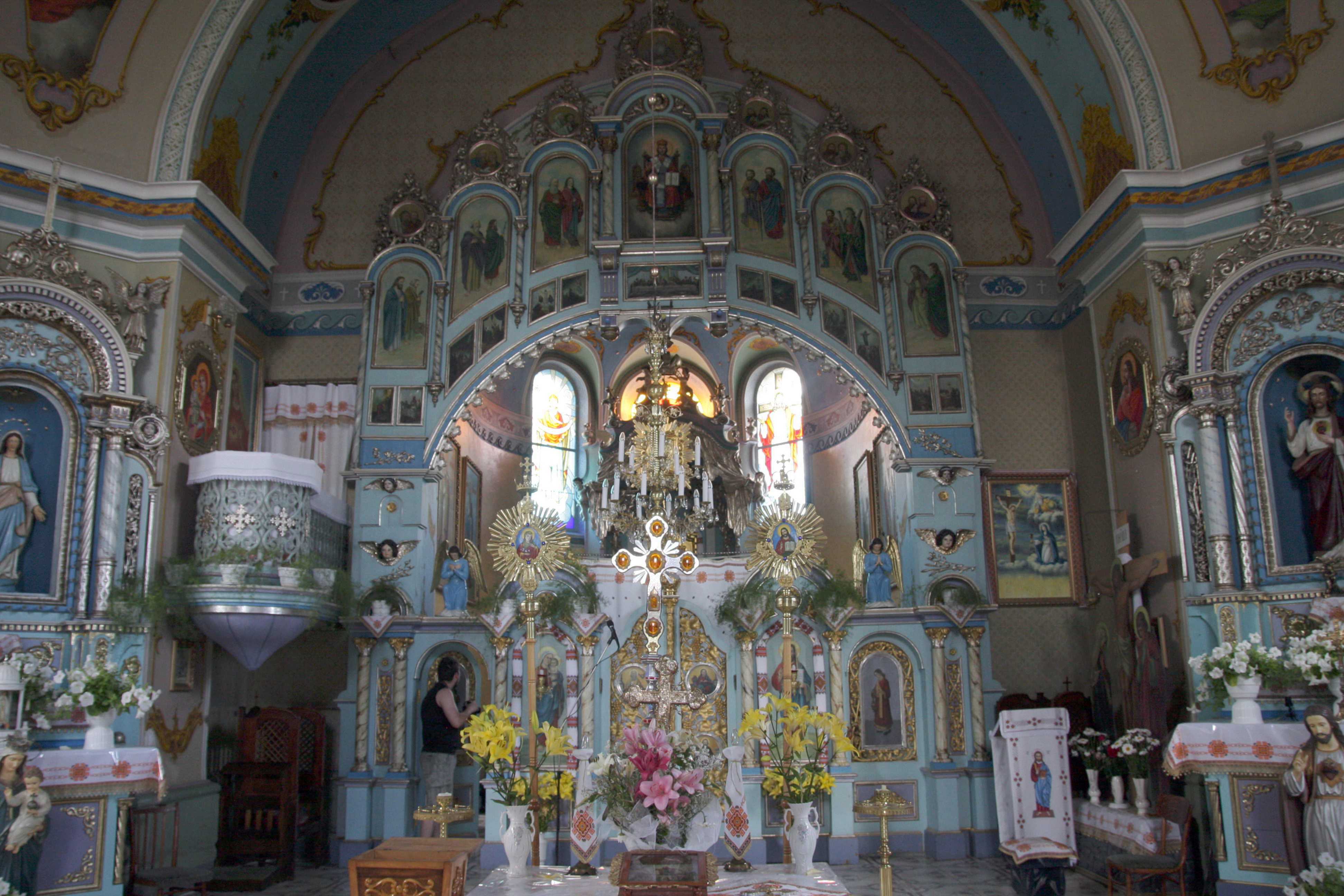 Інтер’єр з видом на іконостас (2)Розмір зображення: 3888:2592 піксел Фото Зенона Боровця і Богдана Тхора, 10 липня 2014 р. |