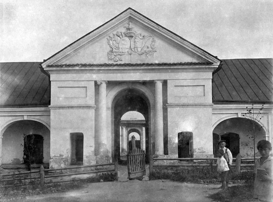 Центральна частина фасаду з проїздомРозмір зображення: 960:709 піксел Фото Стефана Таранушенка і Павла Жолтовського з експедиції Харківського музею українського мистецтва. 1920-і рр. (?) Опубліковано 14.05.2019 р. |