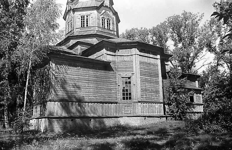 1993 р. Вівтар з прибудовами. Вигляд з південного сходуРозмір зображення: 800:517 піксел 1993 р. 17 серпня. Фото М.І.Жарких. Негатека, № 826-31. |