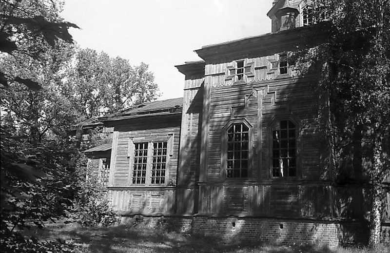 1993 р. Бабинець і нава. Вигляд з південного сходуРозмір зображення: 800:519 піксел 1993 р. 17 серпня. Фото М.І.Жарких. Негатека, № 826-35. |