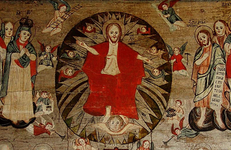 Страшний суд (фрагмент)Розмір зображення: 800:519 піксел Страшний суд (фрагмент). Ікона сер. 18 ст. 56: 57 см. З церкви св.Кузьми і Дем'яна у Бартному. Нині в музеї-замку Ланцуті. |
