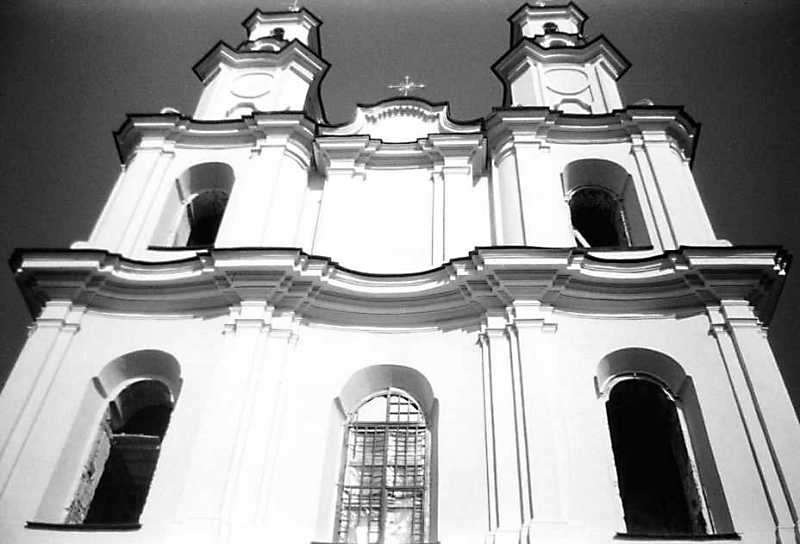 1991 р. Головний фасад у ракурсі. Вигляд із заходуРозмір зображення: 800:544 піксел 1991 р. 17 серпня. Фото М.І.Жарких. Негатека, № 721-23. |
