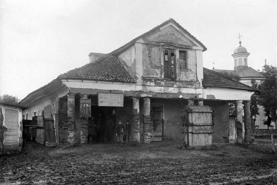 Напис над входом: «Приймальний пункт прядива-паклі та тех-утиль сировини Антонівського с.-г. кредит. товариства Допомога селянинові».