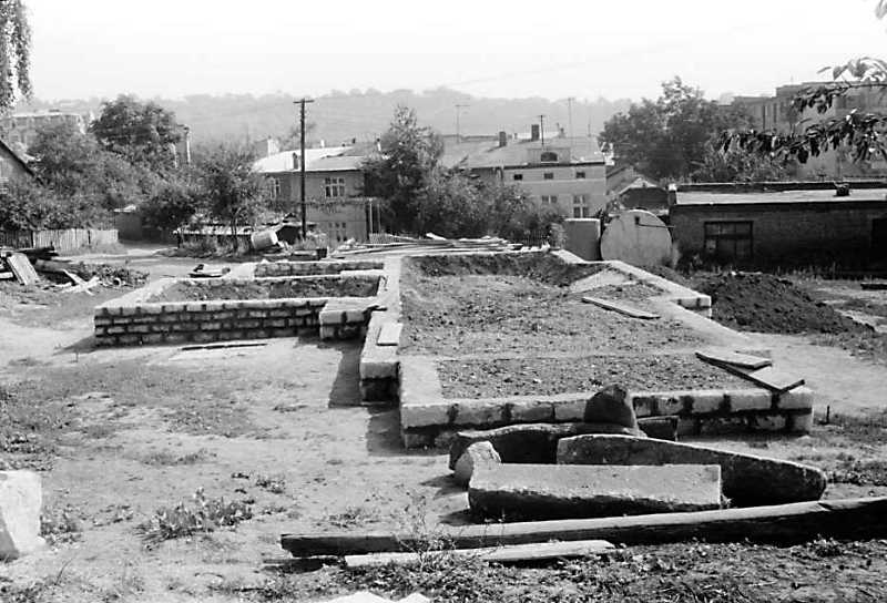 1989 р. Загальний вигляд фундаменту із заходуРозмір зображення: 800:544 піксел 1989 р. 16 серпня. Фото М.І.Жарких. Негатека, № 577-19. |