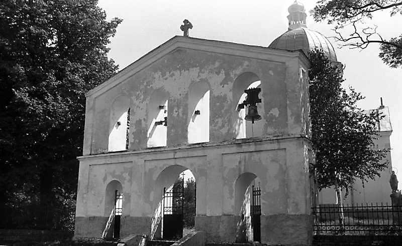 1988 р. Дзвіниця. Вигляд із заходуРозмір зображення: 800:491 піксел 1988 р. 15 серпня. Фото М.І.Жарких. Негатека, № 453-23. |
