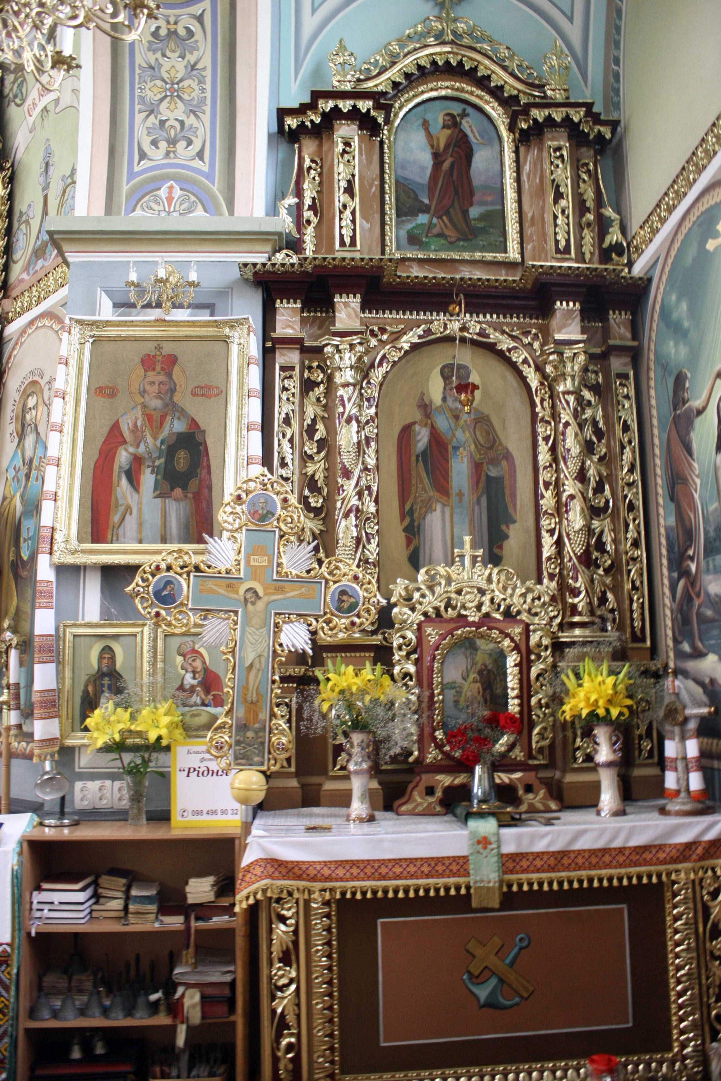 Правий бічний вівтар Розмір зображення: 2336:3504 піксел Фото Зенона Боровця і Богдана Тхора, 9 липня 2014 р. Вкладені елементи Ікона «Св. Микола»