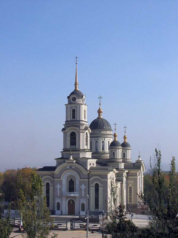 Новий собор було збудовано в 1997 – 2006 рр. на новому місці, форма його також відмінна від старого. Новий собор знаходиться у парку між вул. Артема, Богдана Хмельницького, Челюскінців та бульваром Шевченка (вул. Артема, 129а = Соборна пл., 1) у 2 км на північ від місця старого собору: