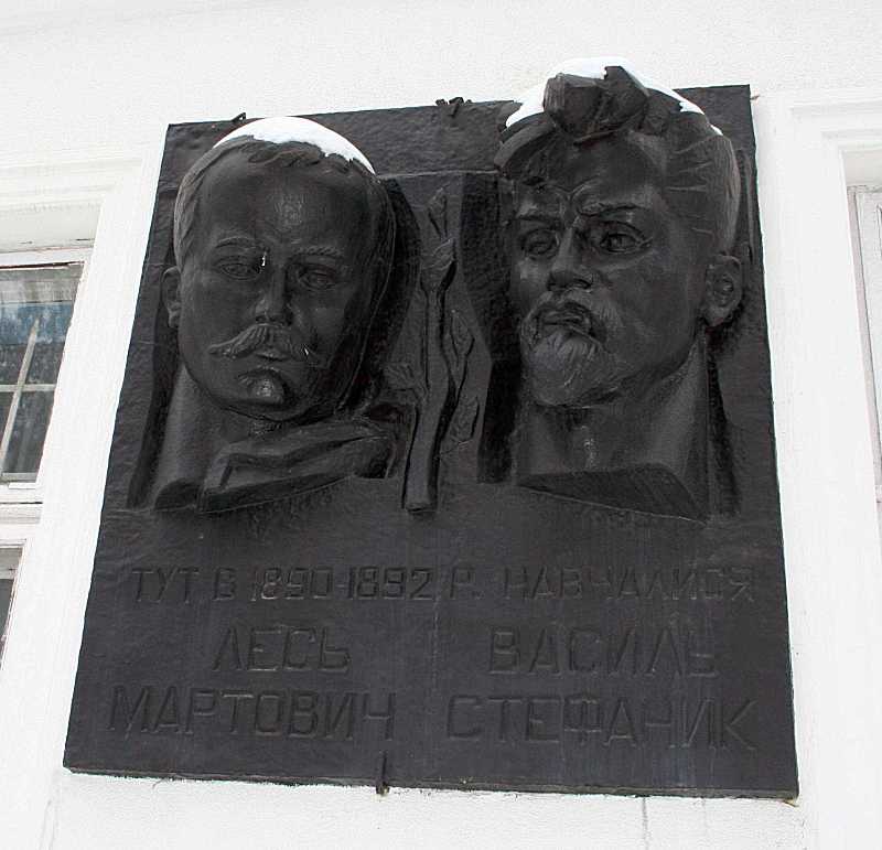 2016 р. Меморіальна дошка Л. Мартовичу та В. СтефаникуРозмір зображення: 800:771 піксел Фото Зенона Боровця, 9 лютого 2017 р. |