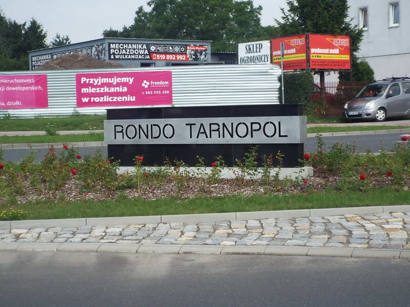 Кільце Tarnopol (Тернопіль). В 2017 р. виповнилося 25 років від підписання умови про співпрацю між Ельблонгом та Тернополем 27.06.1992 р. З оказії ювілею площа на перехресті вулиць Конопницької та Незалежності була названа на честь Тернополя. Фото Івана Парнікози, 12 вересня 2018 р.