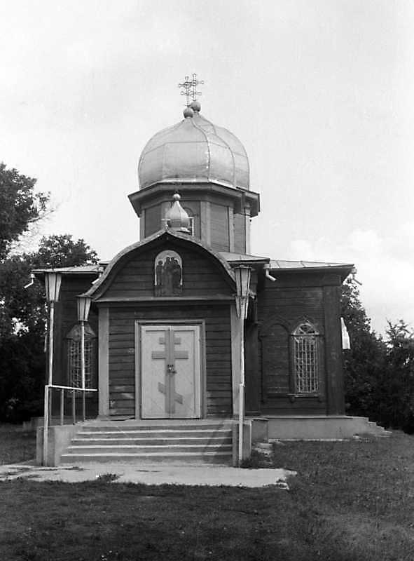 Фурманівка. Дерев. церква в центрі села, орієнтація вівтаря 0°, до бічної вулиці – С3, головний вхід – С3, дерев’яна дзвіниця – А4. Спостереження М.І.Жарких, 3 серпня 1995 р.