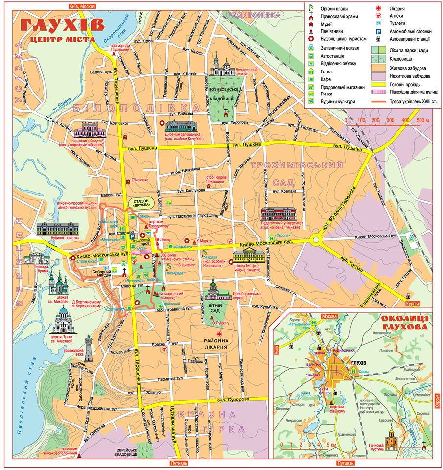 План м. ГлухівРозмір зображення: 905:960 піксел Карта накреслена Дмитром Вортманом, опублікована 14.02.2014 р. Умовні знаки |