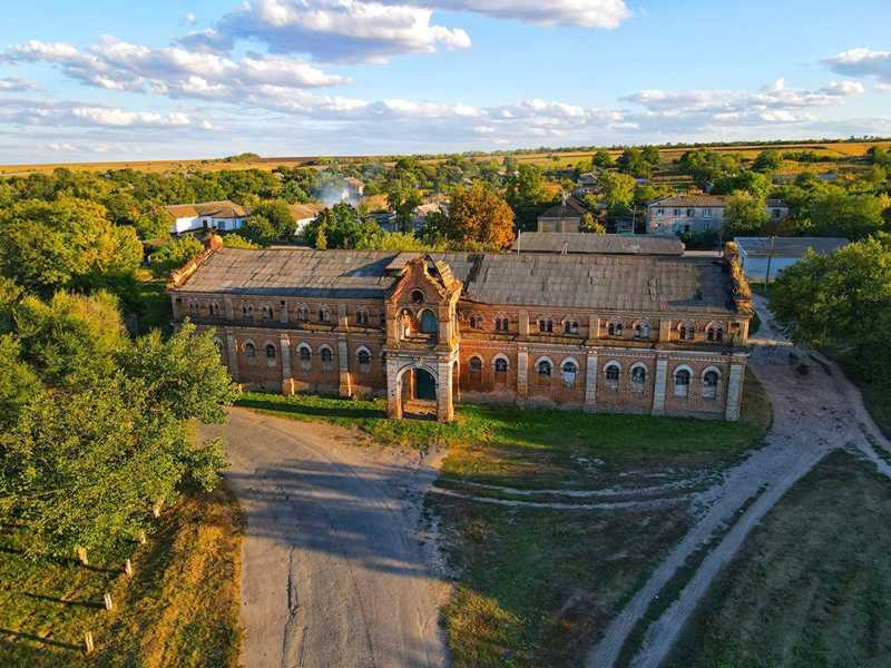 Кінський заводРозмір зображення: 800:600 піксел Аерофото Олександра Єрмошенка 5 вересня 2021 р. з сайту Збудовано в 1892 р. На фото – одна з будівель комплексу. Більше фотографій: + |
