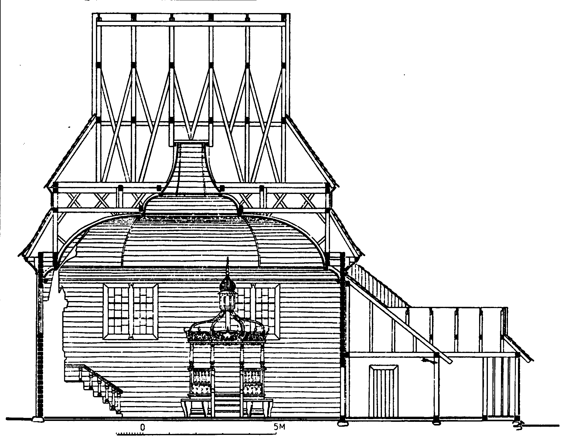 Поздовжній перерізРозмір зображення: 1861:1463 піксел Джерело: Titus D. Hewryk Masterpieces in wood: houses of worship in Ukraine. – New York, 1987, № 162. |