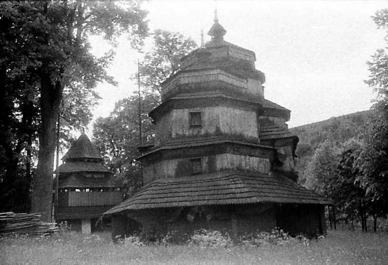 1990 р. Дзвіниця і церква. Вигляд з позиції С1Розмір зображення: 800:547 піксел 1990 р. 13 червня. Фото М.І.Жарких. Негатека, № 628-38. |
