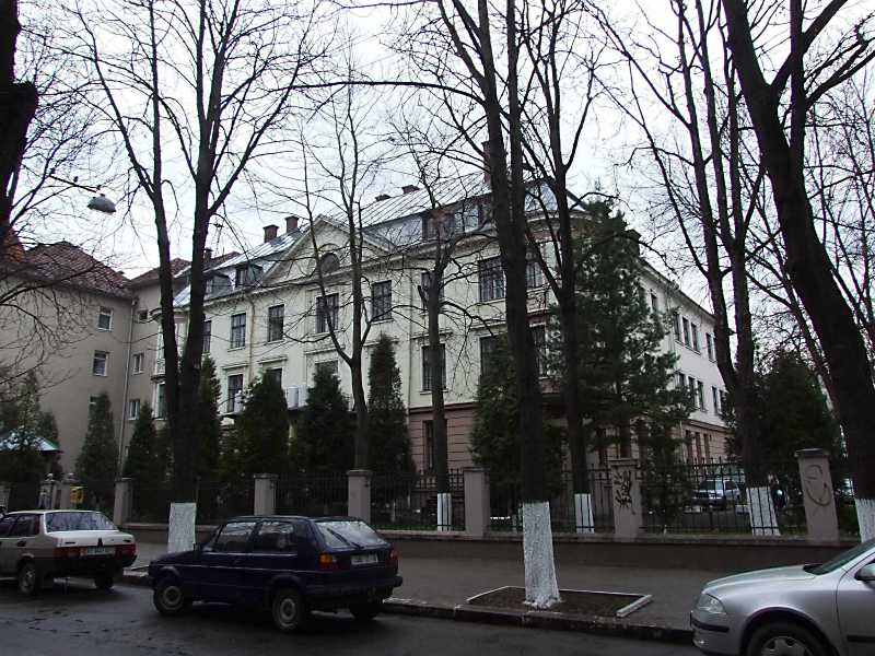 Клініка (№ 17)Розмір зображення: 800:600 піксел 5 квітня 2012 р. Фото М.І.Жарких. Будинок споруджено в 1926 р. для приватної клініка лікаря Гутта. Нині (2012 р.) – обласний фтизіопульмонологічний центр. |