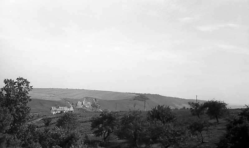 1977 р. Краєвид по дорозі з Бережан до РогатинаРозмір зображення: 800:475 піксел 1977 р. 25 липня. Фото М.І.Жарких. Негатека, № A340-33. |
