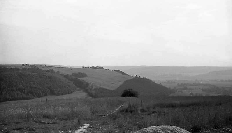 1977 р. Краєвид по дорозі з Бережан до РогатинаРозмір зображення: 800:459 піксел 1977 р. 25 липня. Фото М.І.Жарких. Негатека, № A341-03. |