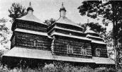 МИХАЙЛОВСКАЯ ЦЕРКОВЬ, 1772 г. Сооружение деревянное, трехсрубное, трехверхое. К квадратному центральному срубу с запада примыкает меньший, также квадратный в плане бабинец, а с востока – квадратный объем с узкими боковыми помещениями. Основные срубы одинаковой высоты, перекрыты четырехскатными шатровыми верхами с двумя заломами над бабинцем и с тремя – над средним срубом и восточной частью. По периметру сооружение окружено поддашием, широкий свес которого опирается на фигурные ступенчатые выпуски венцов. В композиции памятника преобладает горизонтальный ритм членений. В пропорциональном строе высота верхов и срубов имеет соотношение 1:1.