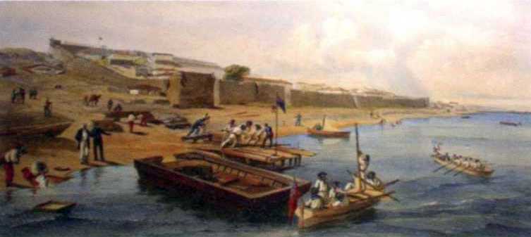 Англійські та французькі матроси біла фортеці Єні-Кале. Мал. В. Сімпсона, 1855 р. [Гайворонський О. Країна Крим. – К.: Майстер книг, 2017 р., c. 293]