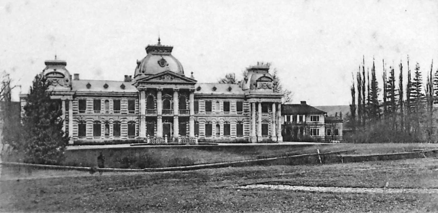 На задньому плані – старий палац Мисловських, попередніх власників Коропця, пізніше зруйнований.