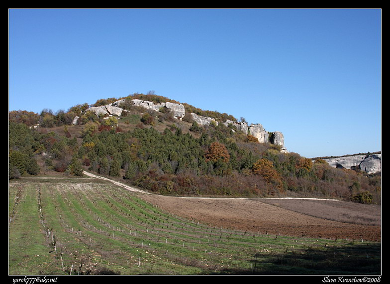 Вид на плато Эски-Кермен с южной стороныРозмір зображення: 784:570 піксел Фото: Ярослав Кузнецов, 9 листопада 2008 р.