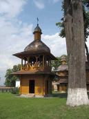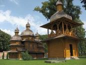 Відомості про архітектурні форми та деталі дерев’яних церков початку XVII століття доповнює також відома гравюра «Крехівський монастир» Діонісія Синкевича 1699 року. На ній майстерно зображено п’ять церков, три дзвіниці та інші дерев’яні споруди, оточені мурованими оборонними стінами та вежами монастиря. Дві церкви тризрубні, одноверхі, одна з них має квадратну форму намету в два яруси з ліхтарем зверху. Західний та східний зруби мають двосхилі дахи з маленькими верхами на кінцях гребенів. Зруби зроблено четвериками, а на них поставлено восьмерики з восьмикутними банями, що мають в основі невеликий перехват. [Історія українського мистецтва. – К.: Наукова думка, 1967 р., т. 2, с. 85 – 86]