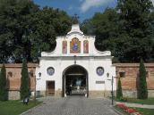 Ворота двухъярусные с широким центральным арочным проездом и двумя боковыми калитками. Верхний ярус решен в виде барочного фронтона с волютами. Фасады оформлены пилястрами и нишами. Ранее ворота были украшены каменной скульптурой и живописью в нишах кисти Я. Калиновича. В 1909 г. рестраврированы северная стена и часть западной, в 1912 г. – остальная часть западной стены. Консервационные работы проводились в 1930-х годах. [Памятники градостроительства и архитектуры УССР. – К.: Будівельник, 1985 г., т. 3, с. 163].