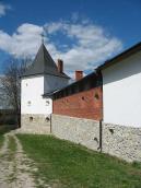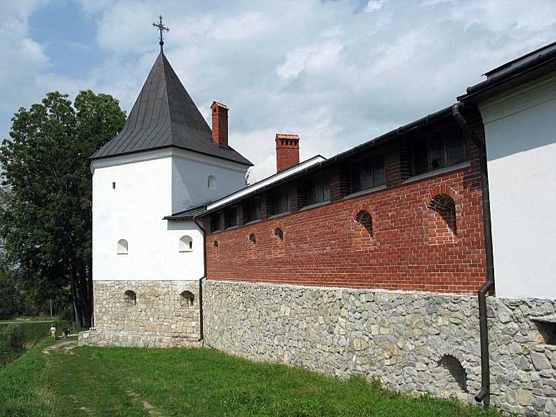 Стены с воротами и башнями, XVII-XVIII вв. Монастырь был хорошо укреплен и приспособлен к обороне. Стены с башнями на углах замыкают с четырех сторон обширный прямоугольный двор. В 1661 г. были возведены две башни, а к 1664 г. завершены основные работы. Вокруг стен был выкопан глубокий ров с мостом при въездных воротах.