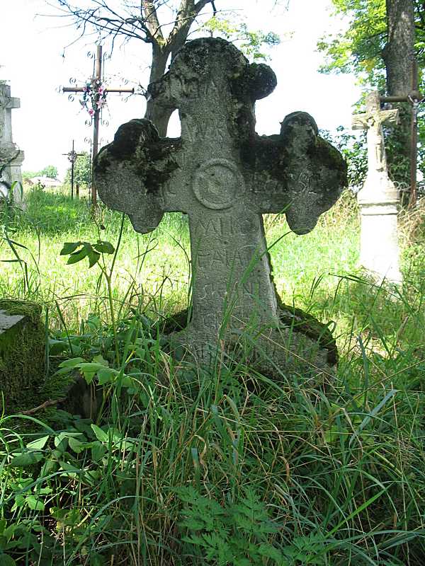 2011 р. Фігурний надгробний хрестРозмір зображення: 600:800 піксел Фото Зенона Боровця і Богдана Тхора, 10 серпня 2011 р. Напис читається погано. |