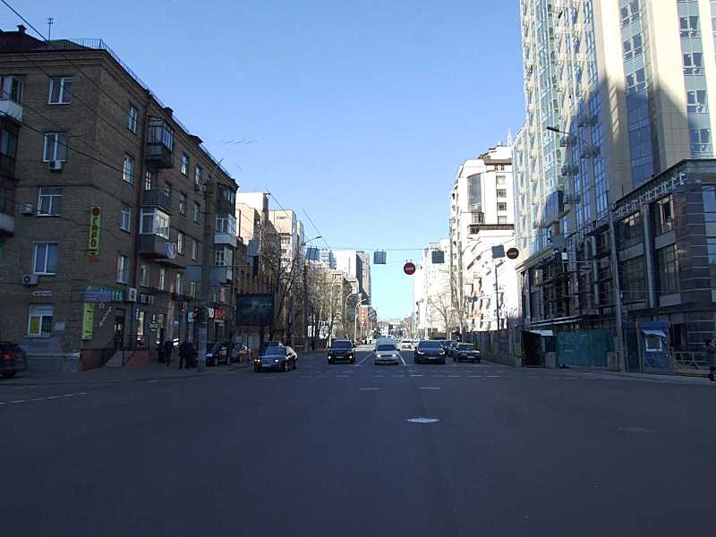 2020 р. Перспектива від вул. Володимиро-Либідської в бік вул. І. ФедороваРозмір зображення: 800:600 піксел Праворуч – фрагмент житлового комплексу «Володимирський» (Антоновича, 109). Фото М. І. Жарких, 12 березня 2020 р. |