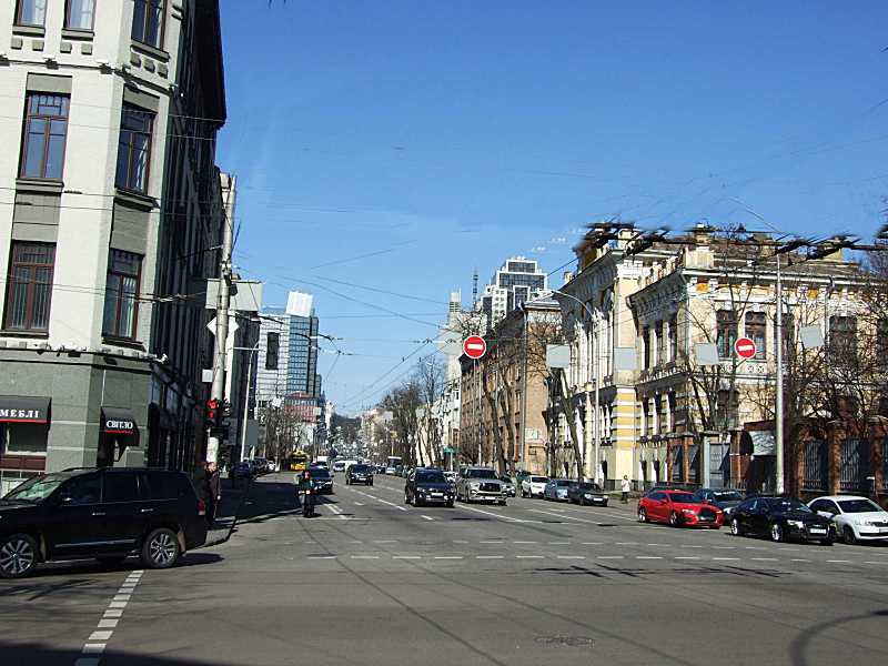 2020 р. Перспектива від вул. І. Федорова в бік вул. ДіловоїРозмір зображення: 800:600 піксел Фото М. І. Жарких, 12 березня 2020 р. Ліворуч – фрагмент бізенс-комплексу «Кузнецький» (Антоновича, 64). |