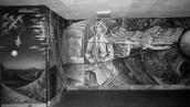 Цікава композиційна знахідка – багатоярусне вирішення простору та насичена змістовність монументального живопису – дали змогу авторам не тільки активно вписати його в інтер’єр, але й створити яскравий образний еквівалент архітектурних ритмів.