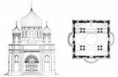 Будівлю 1828-1842 рр. було зведено в «російсько-візантійських» формах. Архітектура церкви відображала процес пошуків державного (національного) стилю в культовому зодчестві Російської імперії. Це був перший приклад російського втручання в київську забудову. Квадратна у плані, п’ятибанна, чотиристовпна, безапсидна споруда поєднала у своєму вигляді риси середньовічної візантійської і північно-руської архітектурних шкіл. Три фасадні стіни прикрашалися масивними кілеподібними перспективними порталами. Над ними у півциркульних арках-нішах розміщувалися розписи із зображеннями святих. На початку 20 ст. арки вибили і натомість влаштували вікна, що покращило освітлення храму, але зіпсувало його зовнішній вигляд. Бічні частини фасадів було винесено в невеликі ризаліти. Усі стіни щедро прикрашались декором з фільонок, ліпних прикрас у вигляді рослинних та геометричних орнаментів, хрестів тощо. Над центральною частиною споруди розміщувалась найбільша цибуляста баня на масивному круглому у плані барабані. Барабан було прикрашено півциркульними вузькими вікнами та нішами з розписами, між якими розташовувались півколони. Над карнизом барабана розташовувався фриз з декоративним орнаментом. По кутах споруди стояло чотири менших бані подібних форм без фризів та розписів. У південну стіну нової церкви було вставлено плити з 12 літерами грецької абетки, які прикрашали фасад церкви 10 ст.