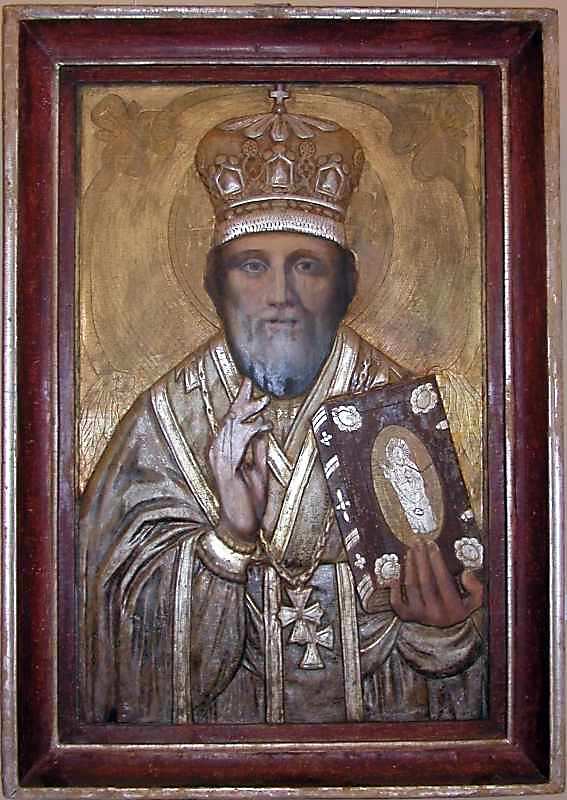 Св.Микола. 19 ст. Дерево, олія, різьблення, позолота 9 серпня 2005 р. Фото М.І.Жарких. Вкладені елементи Голова Ліва рука Права рука