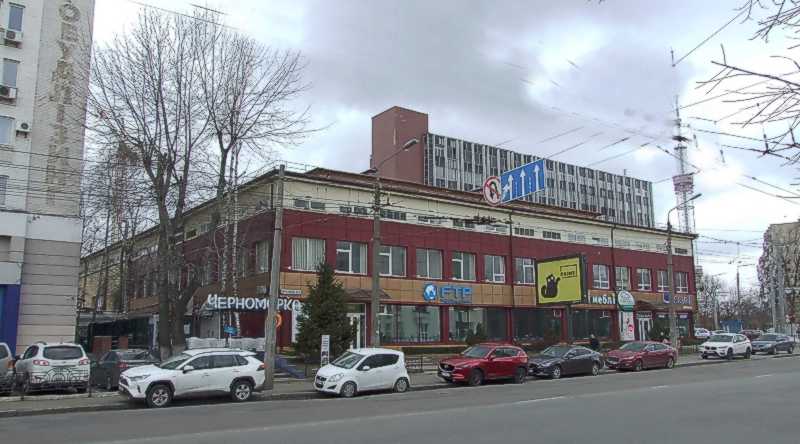 Офісний будинок (№ 83а)Розмір зображення: 800:444 піксел Фото М. І. Жарких, 18 березня 2021 р. Колись тут стояв будинок культури мотозаводу, але тепер, як бачимо, його знесли і збудували новий будинок. |