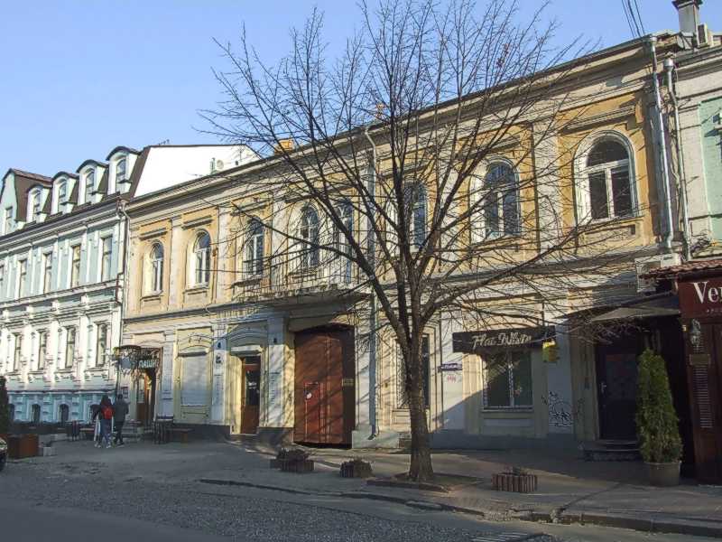 Житловий будинок (№ 20) Розмір зображення: 800:600 піксел Фото М. І. Жарких, 27 березня 2021 р. Вкладені елементи 1999 р. Звід пам’яток Києва (+) 2021 р. Загальний вигляд із заходу 2021 р. Головний фасад 2021 р. Загальний вигляд з півночі