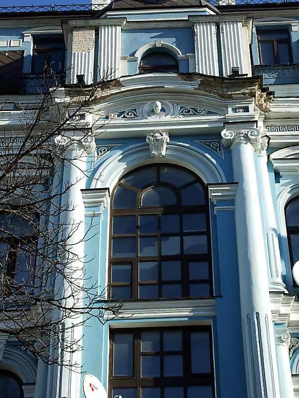 2007 р. Центральна частина головного фасаду Розмір зображення: 600:800 піксел 29 жовтня 2007 р. Фото М.І.Жарких. Вкладені елементи Сандрик