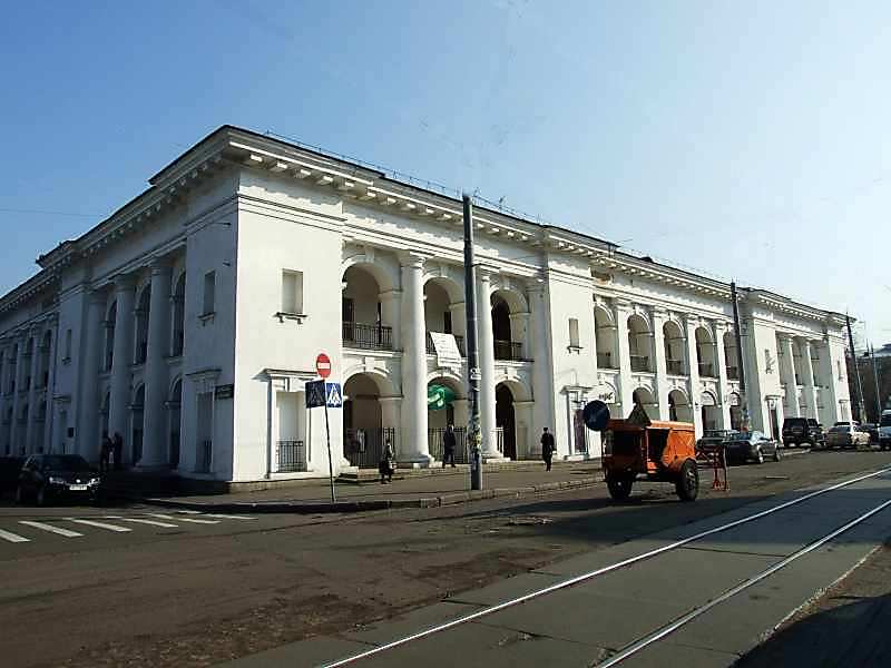 [Слід знати, що давній гостиний двір початку 19 ст. було знесено, тому що при прокладанні метро в 1970-х роках прямо під двором значна його частина була в аварійному стані. В 1983 р. на місці давньої пам’яткової будівлі звели за давнім проектом Л. Руска новий гостиний двір, і подальші суперечки стосуються уже цієї «пам’ятки» пізнього комуністичного часу.]