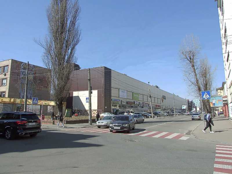 Торговельний центр «Шоколад» (№ 71)Розмір зображення: 800:600 піксел Вигляд з південного сходу. Ліворуч – вул. Оленівська, праворуч – вул. Костянтинівська. Фото М. І. Жарких, 26 березня 2021 р. |