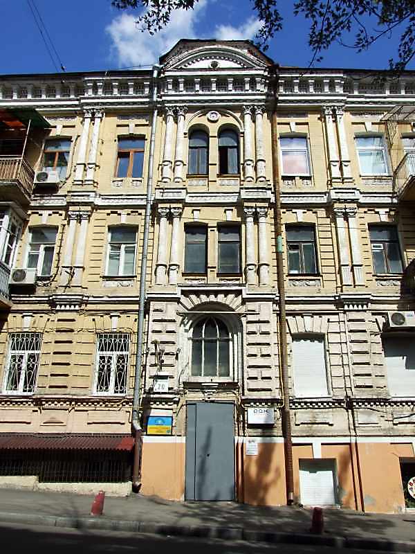 Житловий будинок (№ 20) Розмір зображення: 600:800 піксел Вкладені елементи 2003 р. Звід пам’яток Києва (+) 2008 р. Загальний вигляд (+) 2008 р. Центральна частина головного фасаду (+) 2008 р. Фрагмент головного фасаду