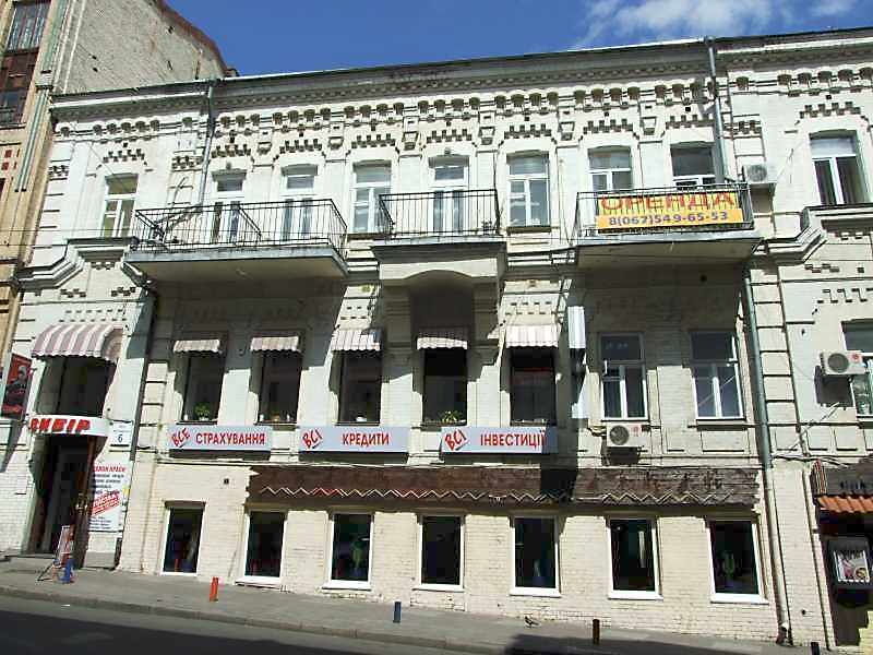 Житловий будинок (№ 6) Розмір зображення: 800:600 піксел Вкладені елементи 2003 р. Звід пам’яток Києва (+) 2008 р. Загальний вигляд 2008 р. Головний фасад