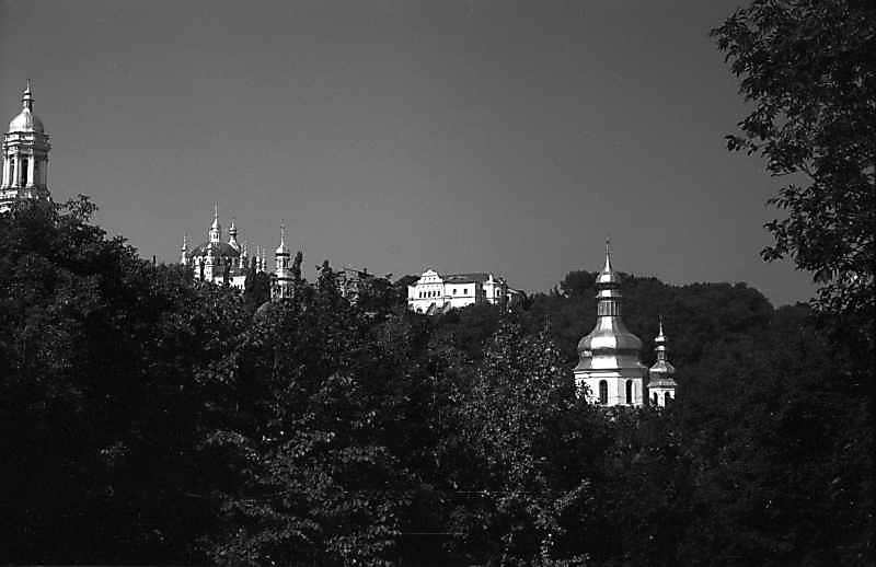 1980 р. Верхня лавра і Ближні печери. Вигляд з півдняРозмір зображення: 800:518 піксел 1980 р. 4 вересня. Фото М.І.Жарких. Негатека, № 125-33. |