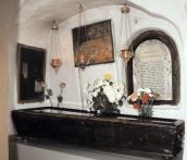 За афонським обрядом, через певний час після поховання кістки померлих ченців викопували і переносили у спеціальну усипальню, черепи братія могла забрати у свої келії. У Києво-Печерській лаврі цієї традиції дотримувалися до кін. 17 ст.: кістки складали в порожні келії. Припускають, що приміщенням для зберігання кісток була т. зв. крипта убієнних Батиєм.