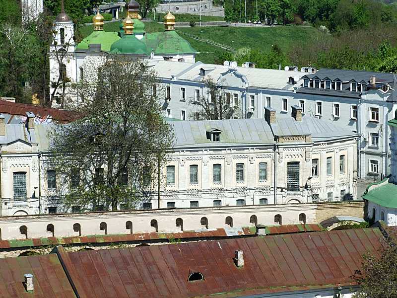 2015 р. Вигляд з півдняРозмір зображення: 800:600 піксел Східна частина корпусу 16. Перед ним – північний мур лаври та дах корпусу 20. Фото М. І. Жарких, 4 травня 2015 р. |