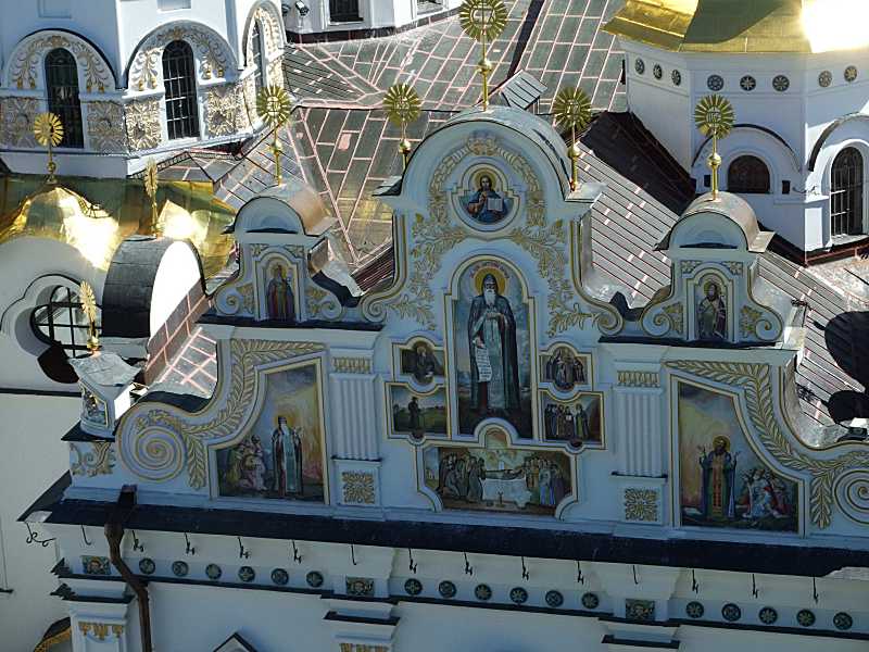 Південний фронтон західного фасадуРозмір зображення: 800:600 піксел Вид з 4-го ярусу великої дзвіниці. Фото М. І. Жарких, 4 травня 2015 р. |