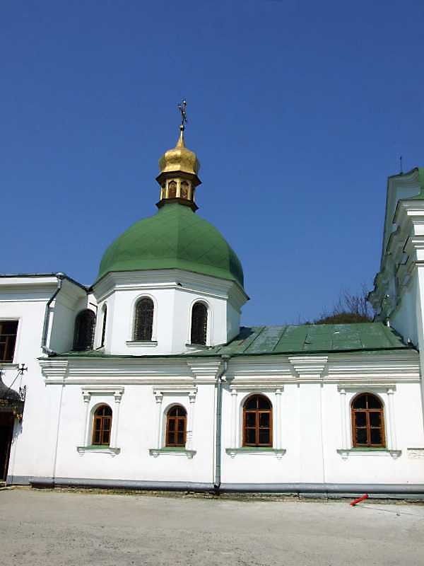 Трапезна Розмір зображення: 600:800 піксел Вкладені елементи 1976 р. Верх. Вигляд з півдня 1983 р. Купол трапезної і фрагмент церкви. Вигляд із заходу 2007 р. Загальний вигляд з півдня 2007 р. Південний фасад 2007 р. Загальний вигляд з південного сходу 2009 р. Загальний вигляд з південного заходу (+) 2009 р. Загальний вигляд з півдня Могила Філарета (Амфітеатрова)